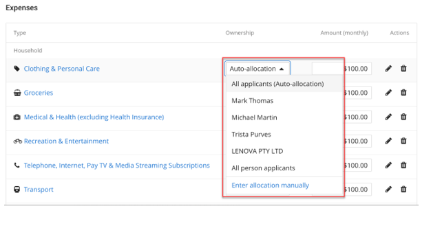 The platform uses a consistent approach to support different applicant needs without slowing you down. A quick select dropdown provides instant access to the most common ownership setups, while the manual entry option lets you easily enter custom or uneven percentage splits whenever required.